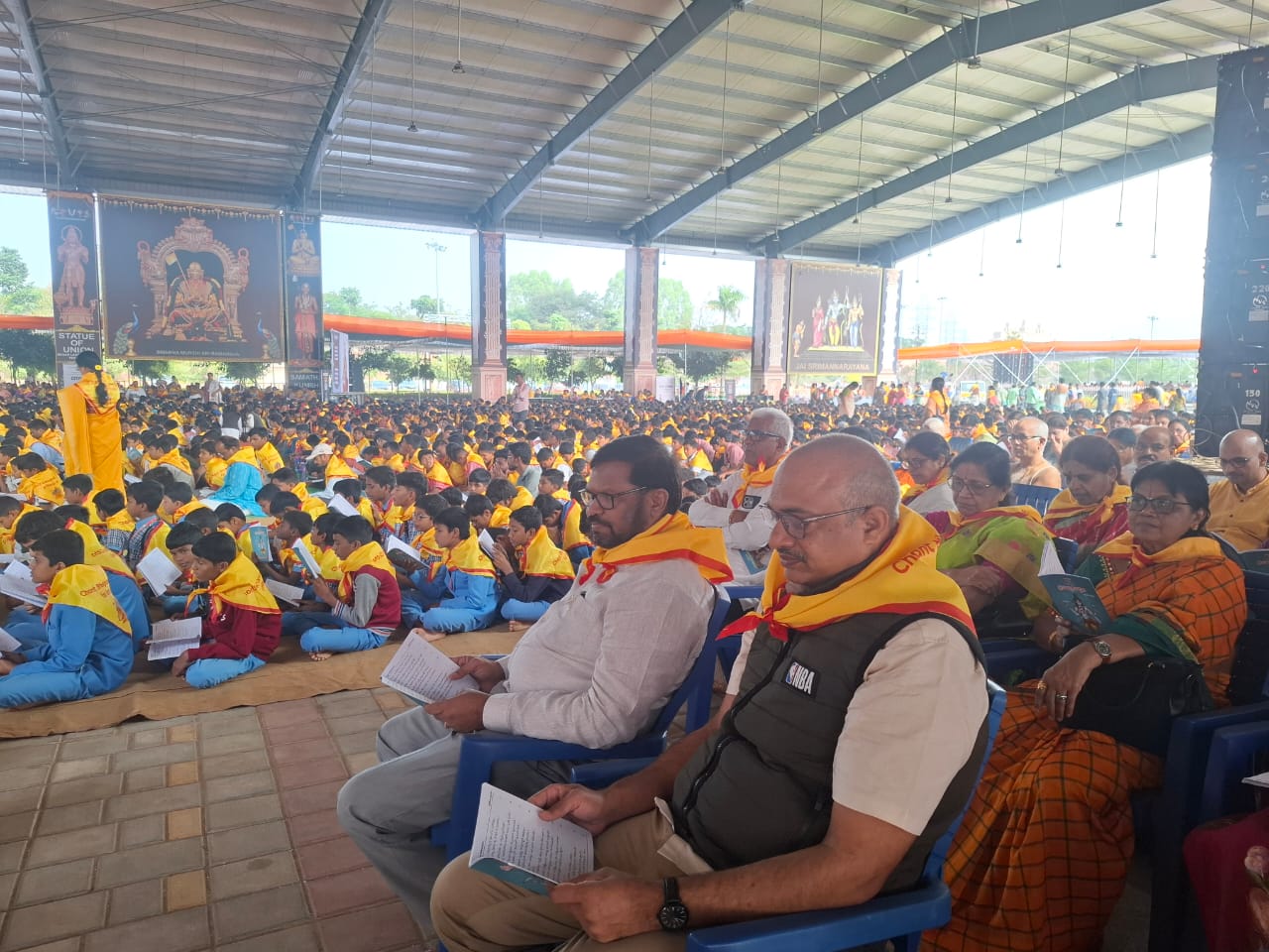 A program was held at the Townhall in the Statue of Equality, Muchintal, Hyderabad, where Sri Chinna Jeeyar Swamiji interacted with the students of Bhaskar Pharmacy College on the topic "Ramanuja Charya: A Social Reformer" on 14th February, 2025.