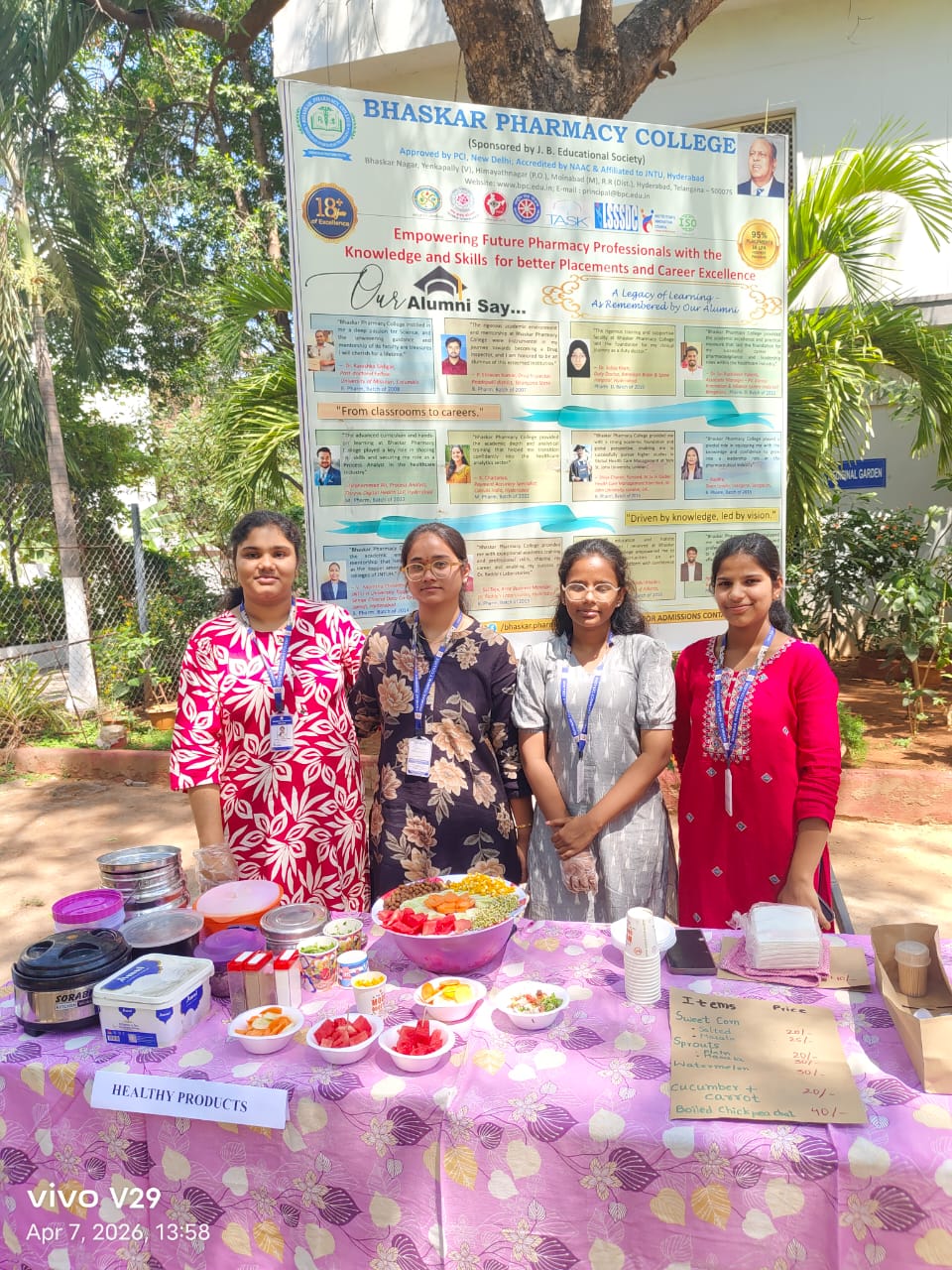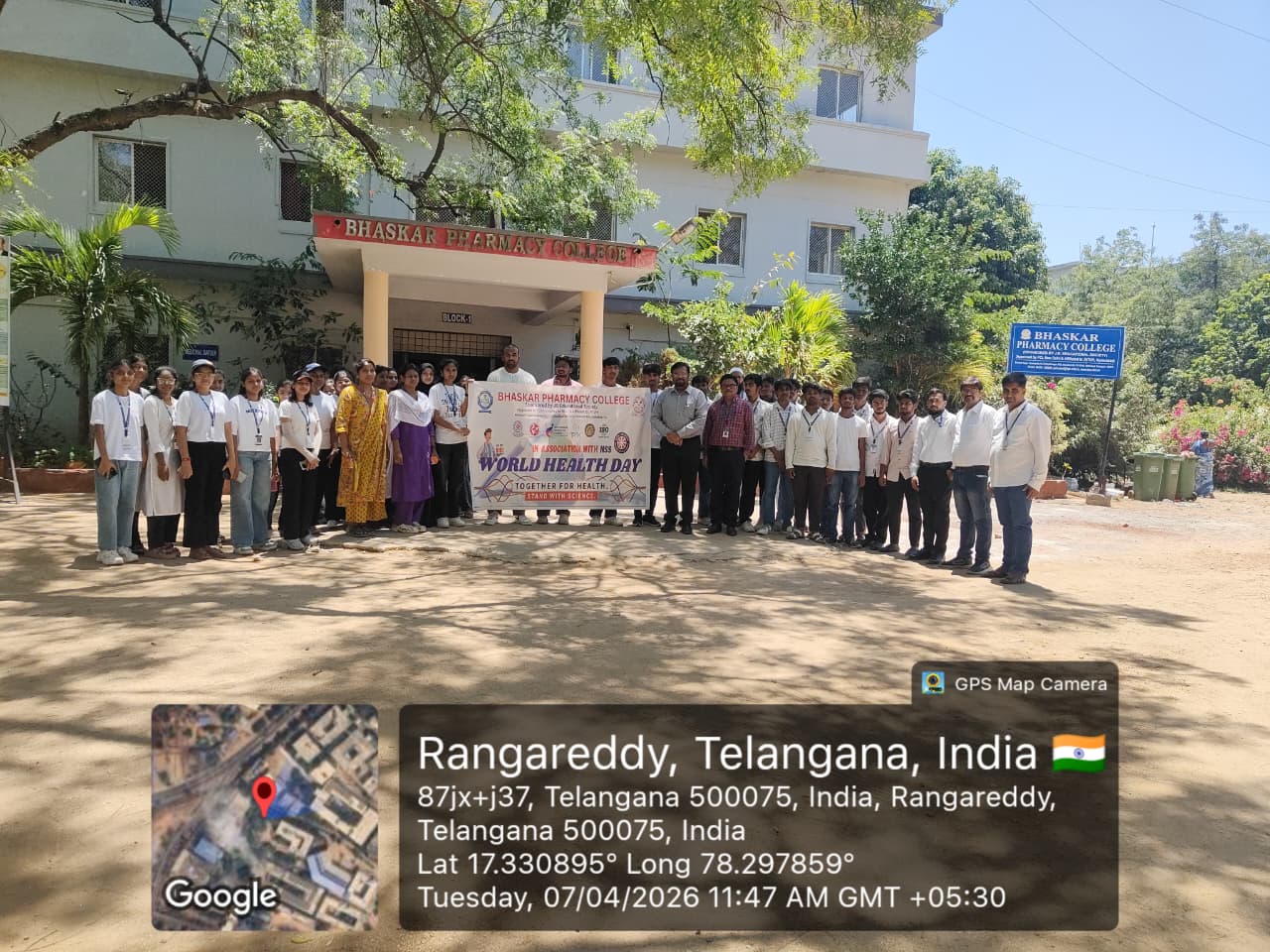 Bhaskar Pharmacy College successfully organized a World Health Day celebration on 07.04.2026, featuring free health checkups (BP and sugar), a marathon event, fitness challenges, food stalls, and a diet food competition, promoting health awareness and wellness among students and staff.
