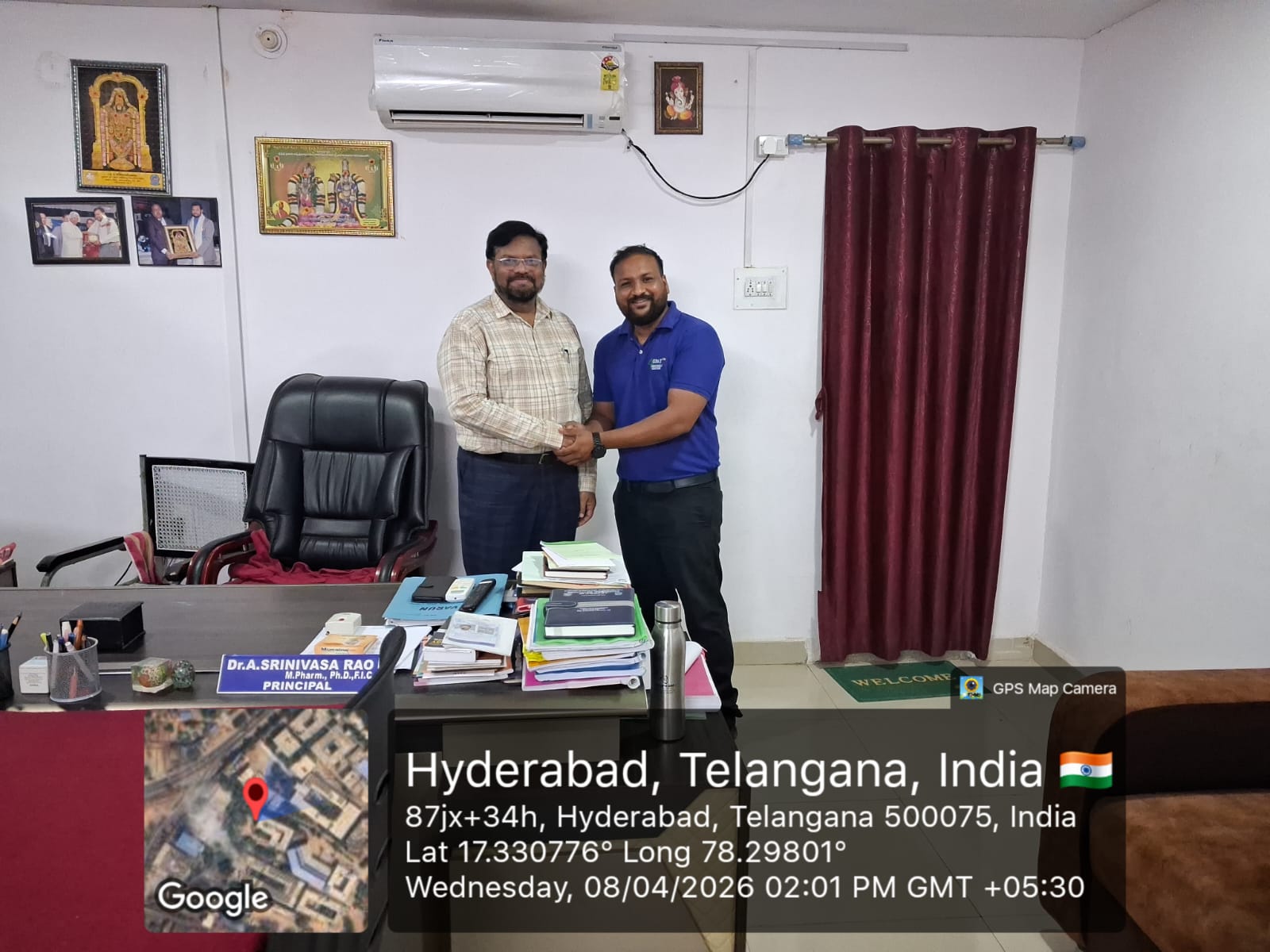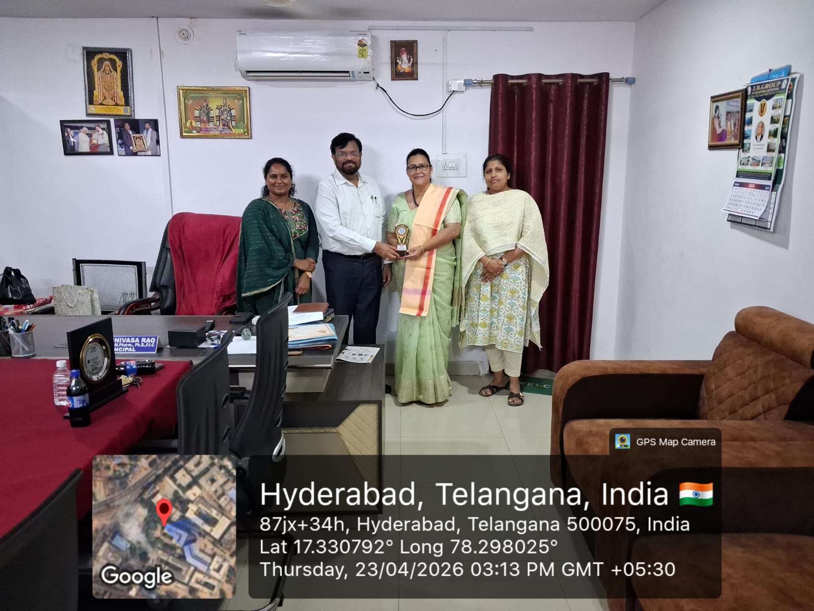 Dr. A. Srinivasa Rao, Principal of Bhaskar Pharmacy College, was honored with the "Distinguished Teacher" award for the year 2023 by the Pharmacy Teachers Trust at an award ceremony held at G. Pulla Reddy College of Pharmacy, Mehdipatnam, Hyderabad, on 26th April 2025.