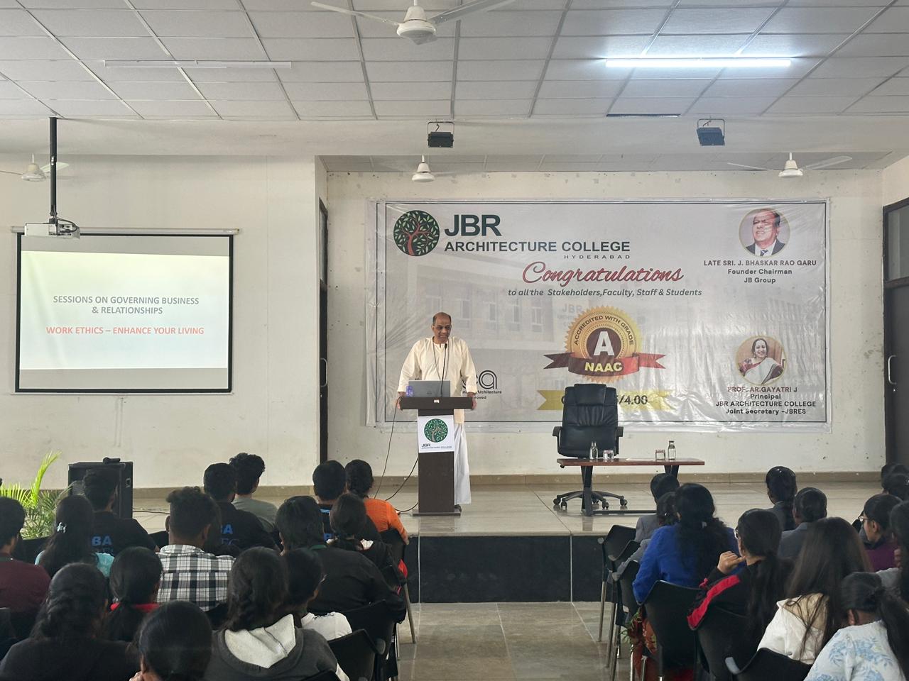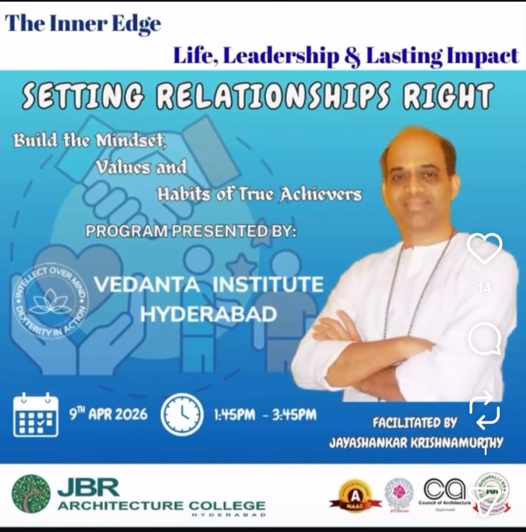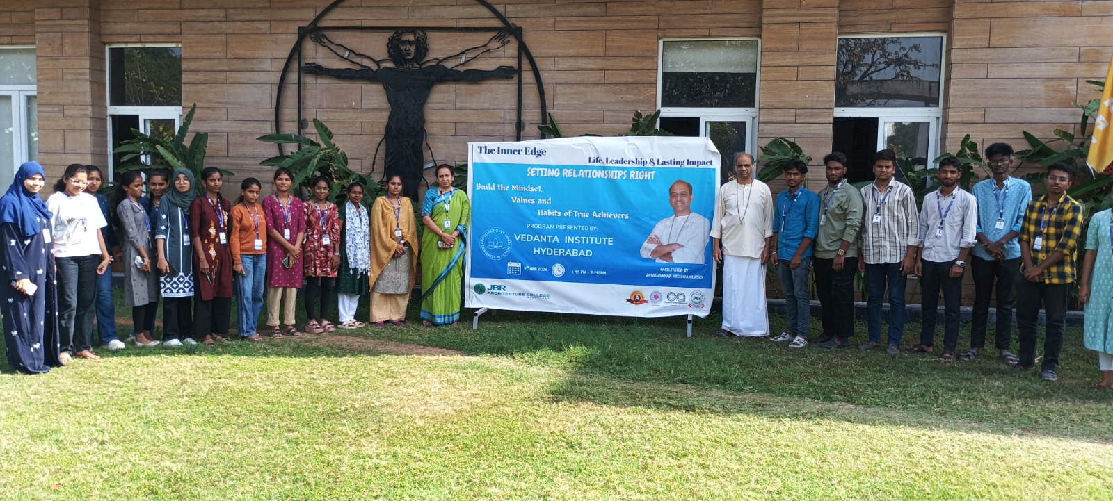 The students attended a seminar on “The Inner Edge Life, Leadership & Lasting Impact”, presented by Vedanta Institute, Hyderabad, and organized by JBR Architecture College on 12.12.2025.