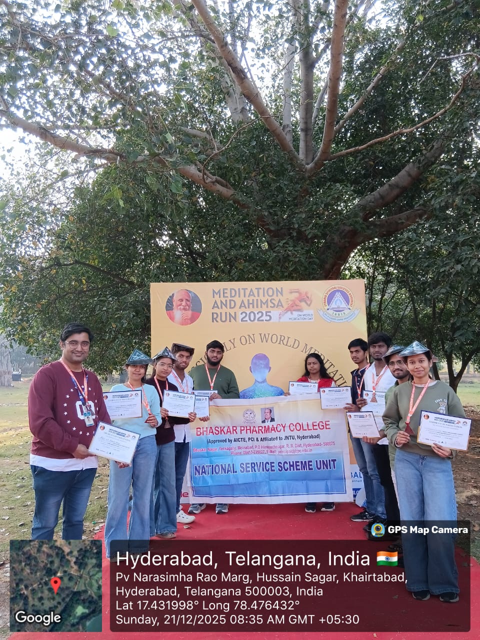 The NSS unit of Bhaskar Pharmacy College participated in the awareness and sensitization program on "Drug Abuse and Anti-ragging" organized by Telangana Council of Higher Education at Masab Tank, Hyderabad on 17th August, 2024.