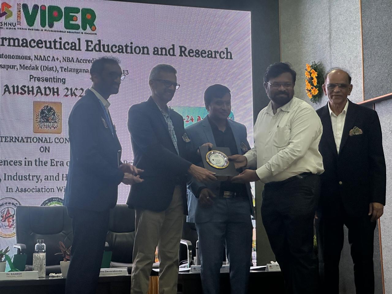 The Principal and faculty members attended the International Conference AUSADH 2K26 titled “Pharmaceutical Sciences in the Era of Innovation: Bridging Research, Industry, and Healthcare,” held on 23.04.2026 at VIPER, Narsapur, Medak (Dist.).
