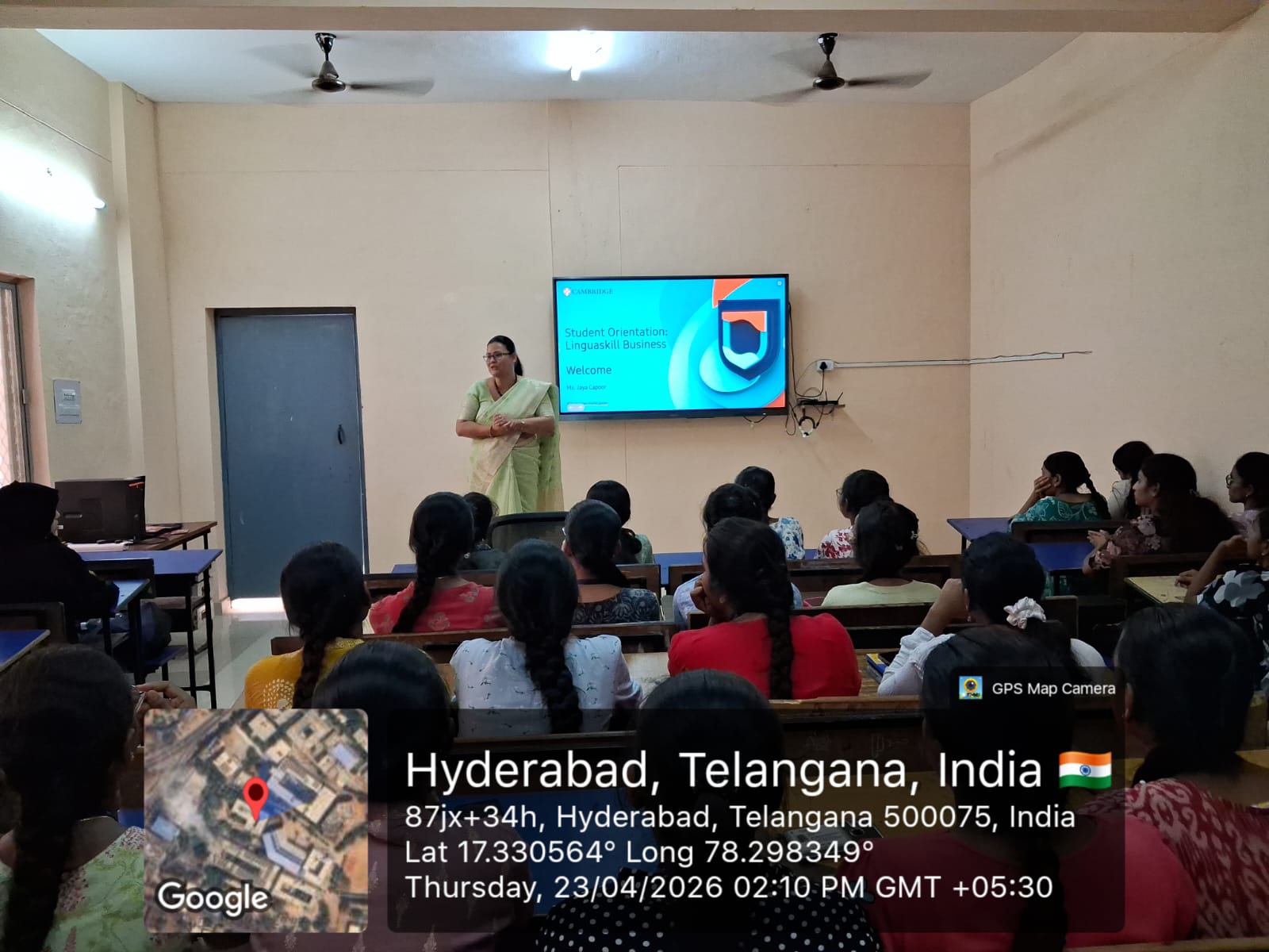 An expert lecture titled “Empowering Students for Success through Cambridge Linguaskill Training” was held on 23.04.2026, led by Mrs. Jaya Capoor, Academic Trainer.