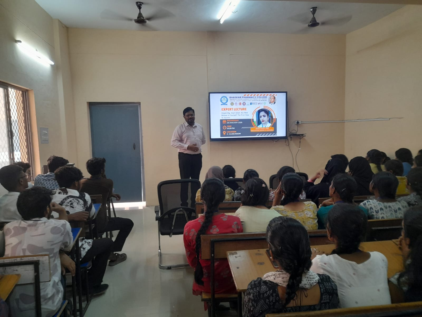 A Expert talk on “Dream Big, Start Small, Act Now, Believe in Yourself: The First step to success” was held on 28.01.2026, led by Mrs. Shaikh Fauzia F Raje, Motivational Speaker & Counsellor, Hyderabad.