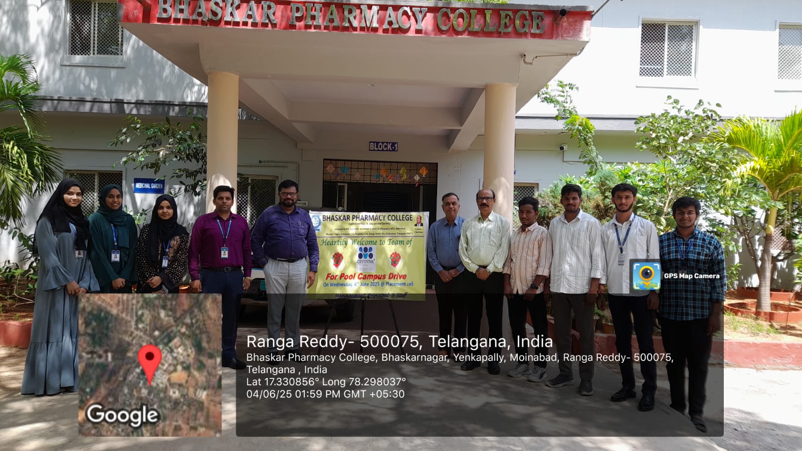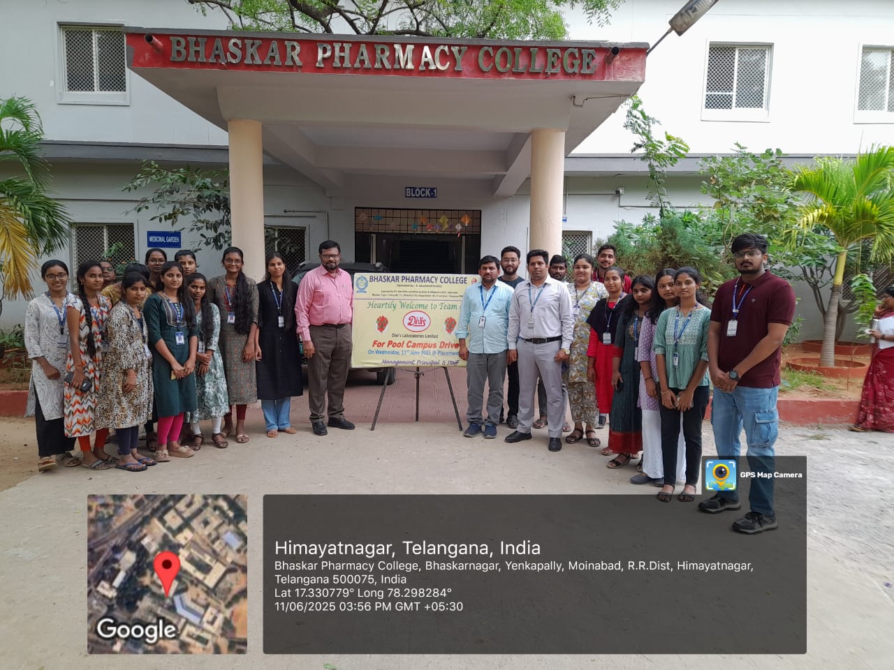 Bhaskar Pharmacy College continues to uphold its commitment to student career development by successfully organizing campus recruitment drives with reputed pharmaceutical companies. In the recent academic year, the college conducted the following placement drives: