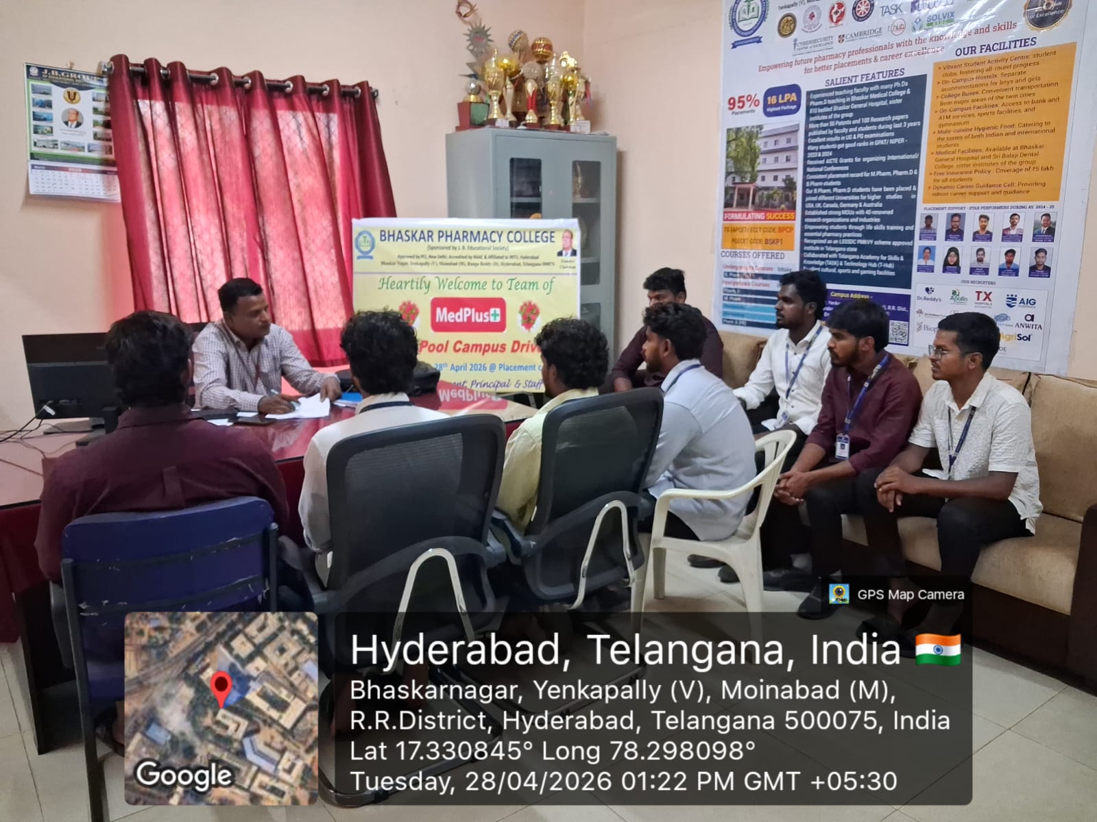 A campus recruitment drive for the position of Pharmacist was successfully conducted by MedPlus, Hyderabad, at Bhaskar Pharmacy College on 28.04.2026.